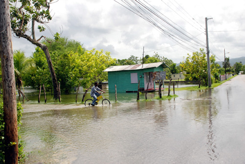 Tashieka Mair photo A flooded intersection in Bastard Cedar Walk, Westemoreland following Tropical Storm Gustav. The road was flooded after a nearby river overflowed its banks. Several houses were also flooded.